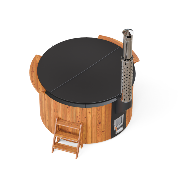 Вы сможете нежиться в купели круглый год, при любой погоде. Вода быстро набирается и быстро нагревается. Добиться комфортной температуры позволяет печь из нержавеющей стали, аккуратно интегрированная в емкость. Всего полтора часа — и можете окунаться в купель. Надежная термокрышка поможет ускорить время нагрева и сохранить тепло.