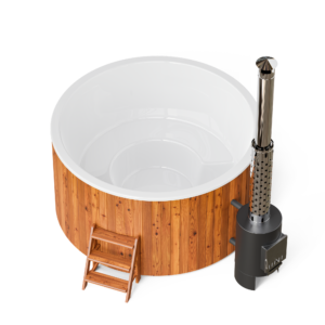 Модель оснащена внешней печью мощностью 40кВт, которая за 1,5-2 часа нагревает воду до комфортной температуры. Печь находится на безопасном расстоянии от купели – о нее невозможно обжечься.